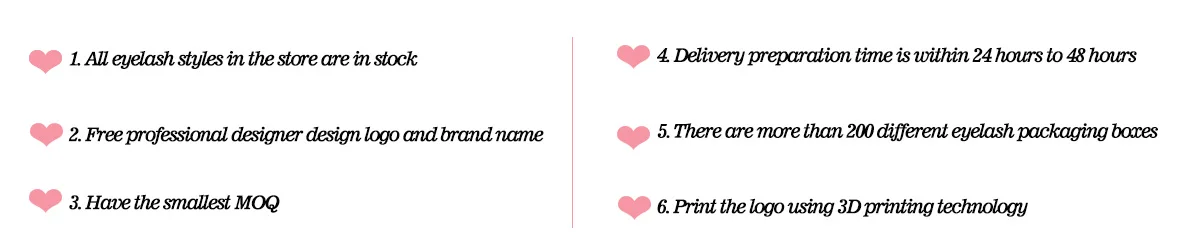 We ad here to our aim of "to manufacture the best quality products and offer the best service". Each producing process of our lashes is under strict quality control, from materials to workflow. So each pair of lashes delivered to you are in good quality.